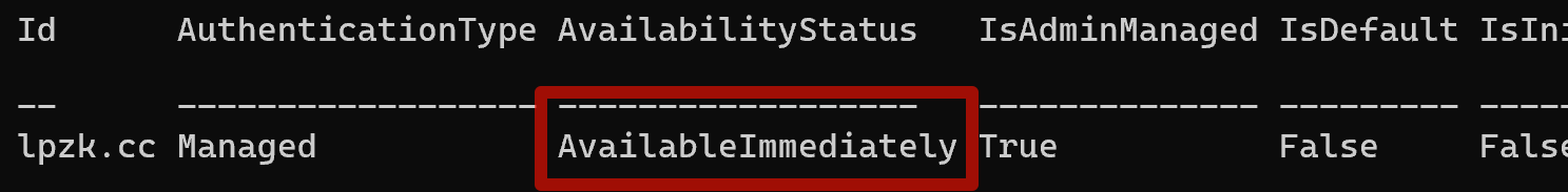 Get-MgDomain -DomainId "(添加域名)" | Format-List